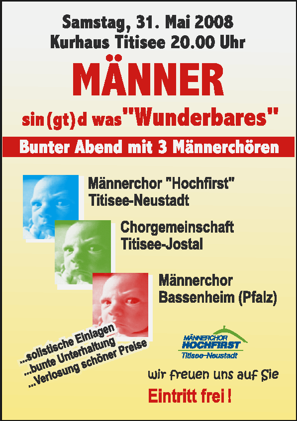 Den Auftakt machte der Männerchor Hochfirst mit einer Komposition seines Dirigenten Robert Mayr. Mit viel Herzblut hat er das Lied "Schau ich vom Hochfirst" seinen Mannen auf den Leib geschrieben. Bei "Heija, wir Zigeuner" trauten sich die Neustädter Sänger zu einem lauten und verwegenen "Hey!" , dass die Heißblütigkeit des fahrenden Volkes zum Ausdruck bringen sollte. Schön https://strato-editor.com/.cm4all/uproc.php/0/Konzert%202008.gif?_=1873c5e0b13 die Männerstimmen, die Keyboardbegleitung dazu dominant elektrisch, so dass das Zigeunerlied die modernen Färbung eines Schlagers erhielt. "Suliko" — von Chören gerne ins Programm genommen — einmal wieder aus Männerkehlen in Frauenherzen gesungen, stark romantisch und mit der vierstimmigen Inbrunst und dem Tenor-Solo von Hanspeter Lais. Das i-Tüpfelchen war die Mundharmonika, welche die Keyboardbegleitung sanft untermalte.